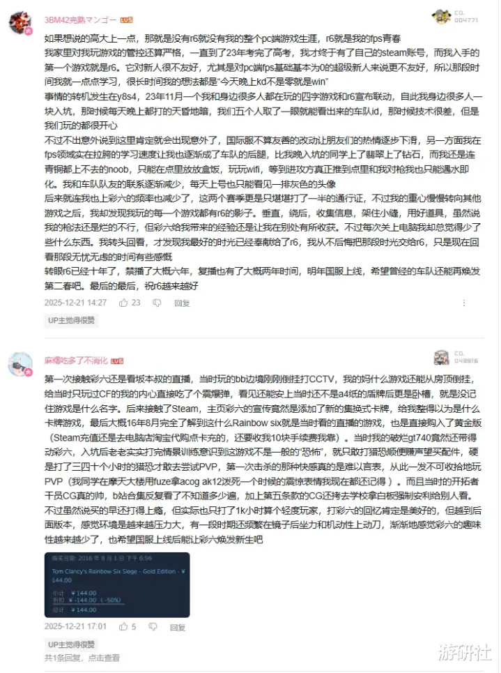这一战略可以溯源到2025年6月,由国服团队官号上传的第一部视频:资深干员2025——《彩虹六号》中文社区玩家纪录片。